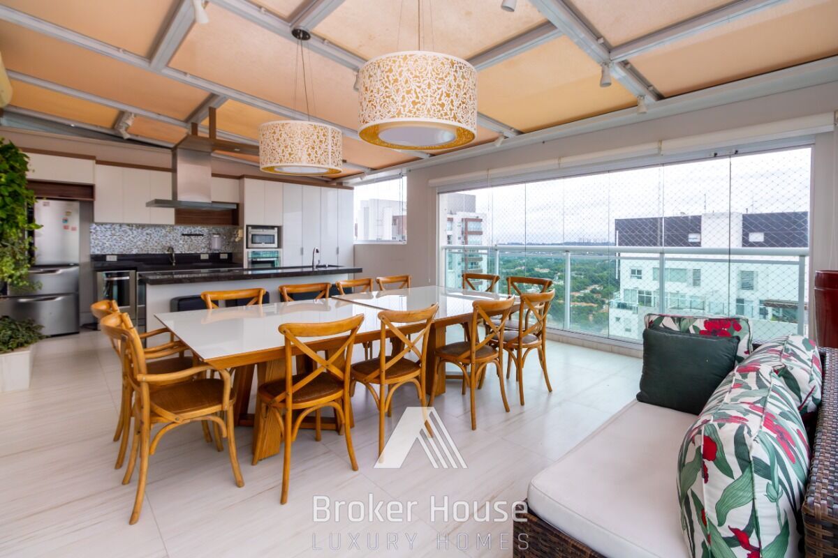 Varanda gourmet, integrada com a cozinha totalmente equipada e com a sala de jantar e a sala de estar. Lavabo. 2 suítes, a master com closet e varanda privativa.