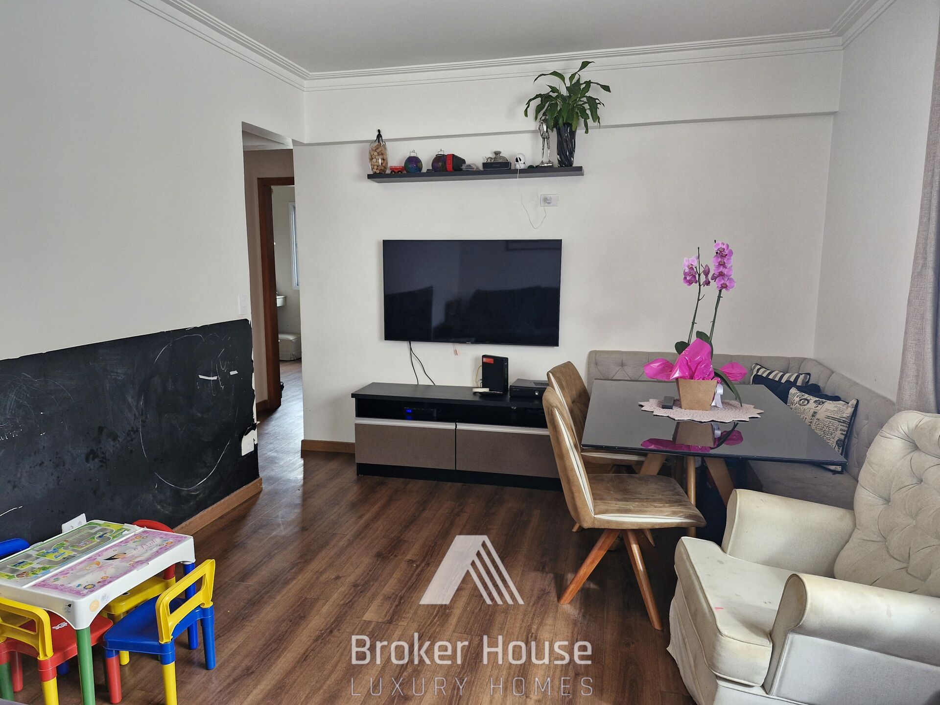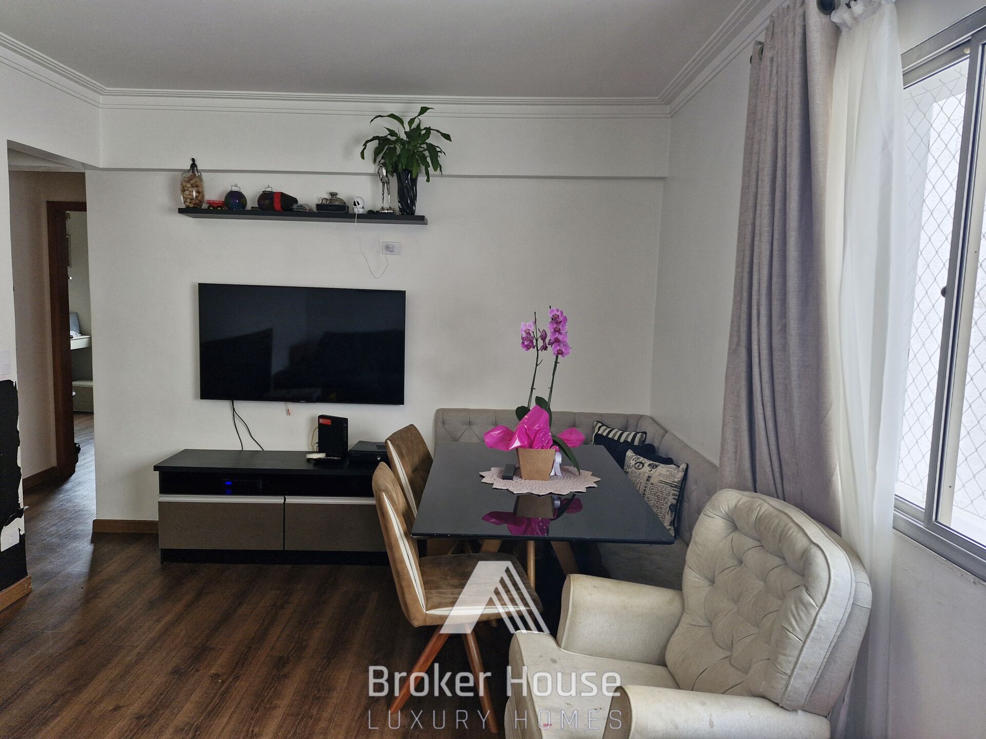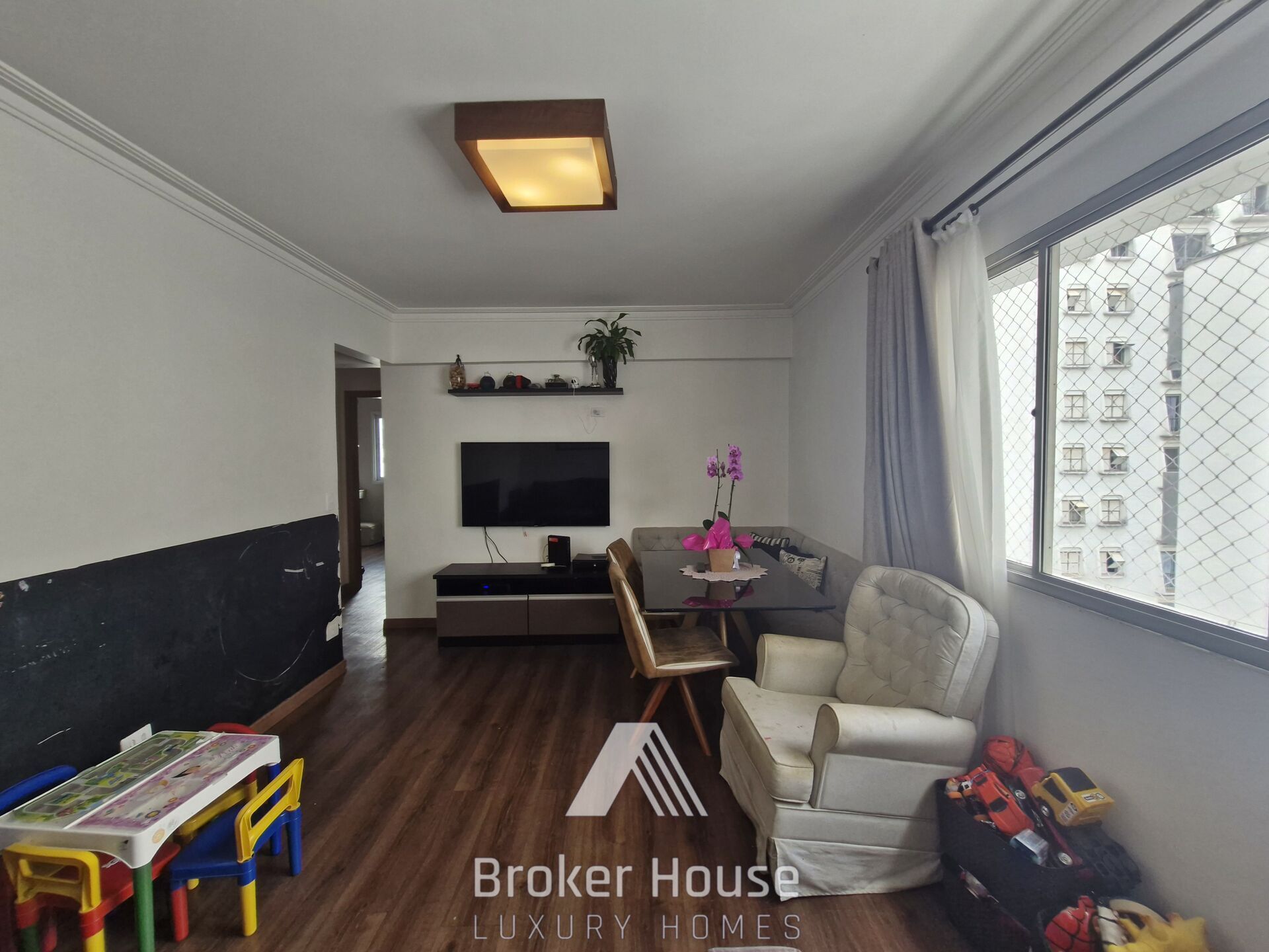 São 80 m2 com 2 dormitórios confortáveis, sala de estar e jantar integradas, escritório, cozinha com armários planejados, área de serviço e dependência para funcionários.