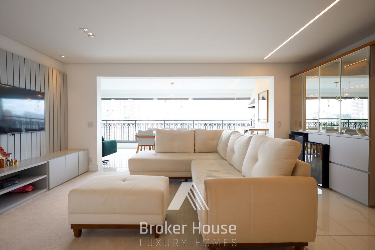 Sala é espaçosa e integrada à varanda gourmet. Três suítes amplas. Cozinha moderna e planejada.