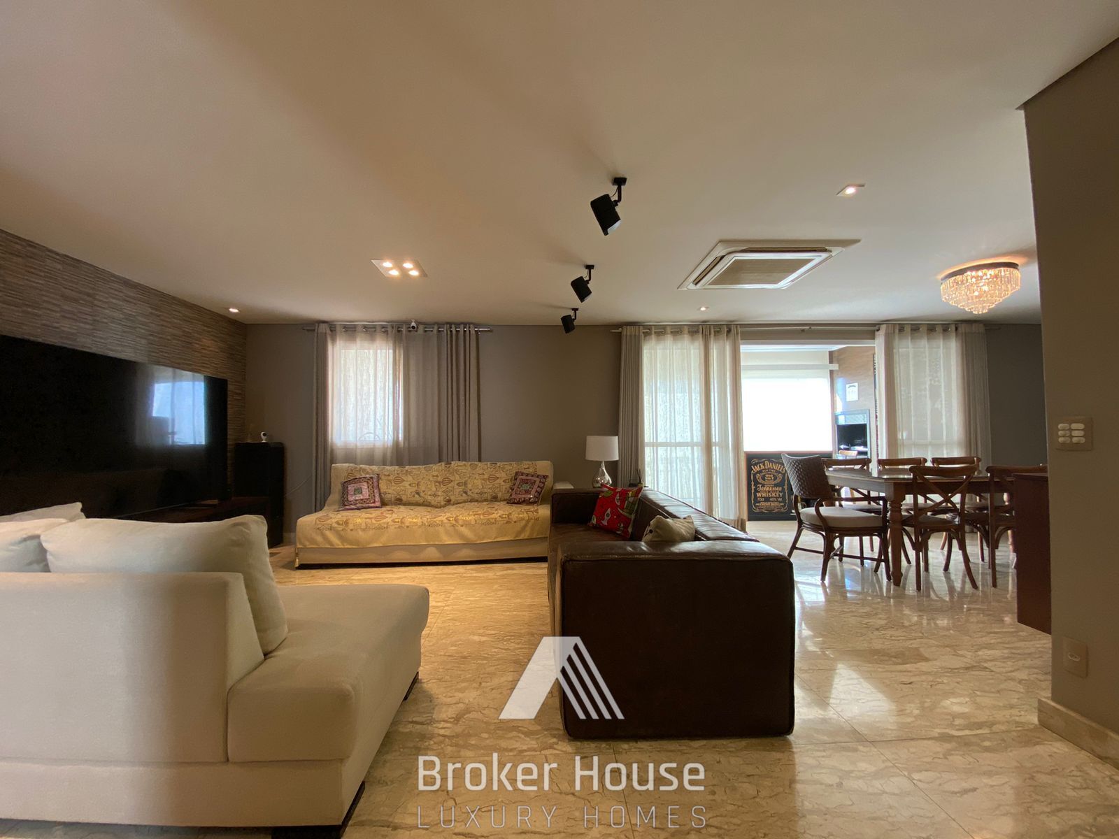 Living para dois amplos ambientes, com ar condicionado K7. Lavabo e escritório. Varanda gourmet ampla, com fechamento, churrasqueira e vista livre.