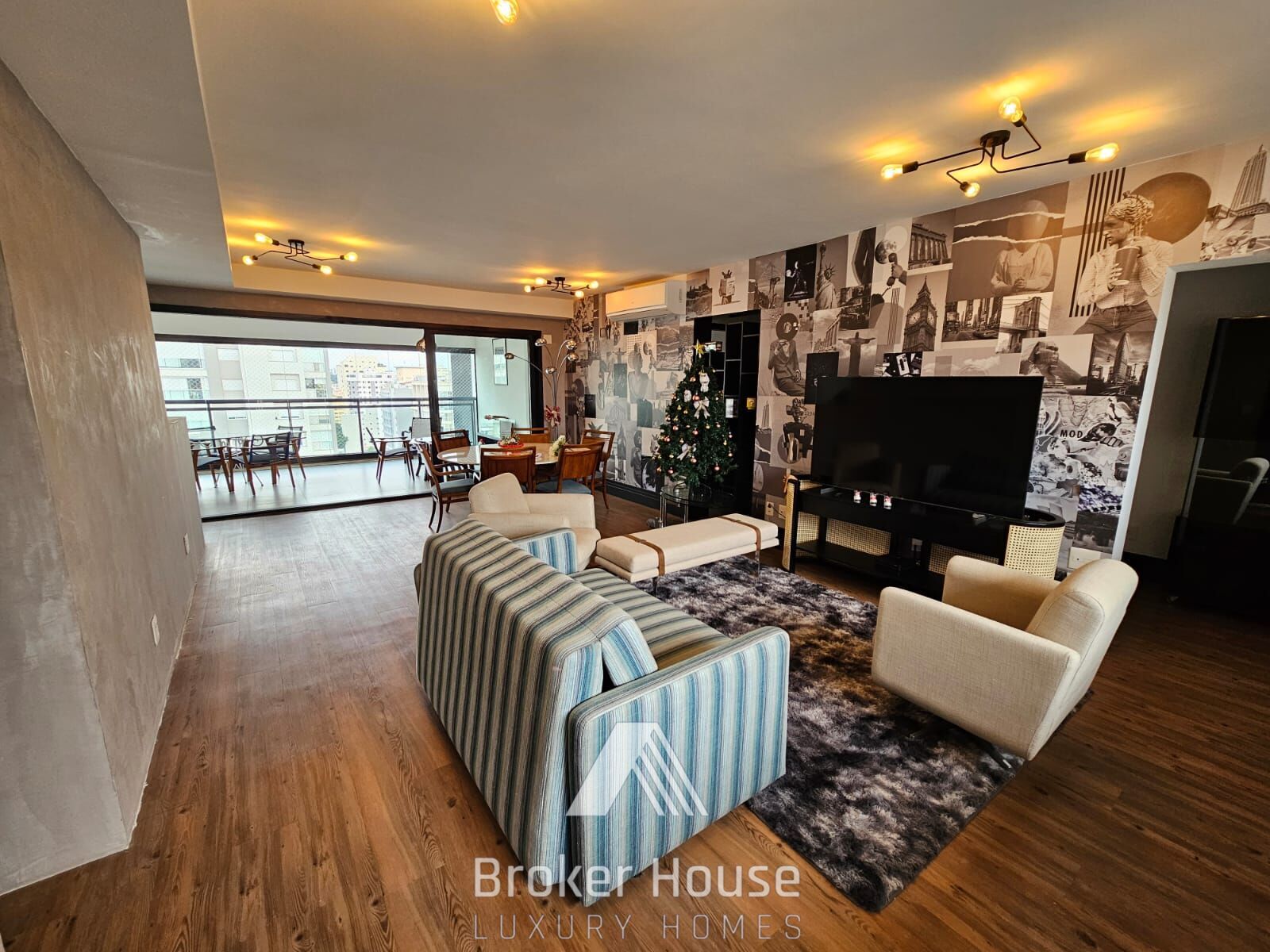 Living amplo, varanda gourmet, lavabo, 3 suítes, a máster possui espaço para cama king size e closet. Todas as suítes e sala possuem ar-condicionado. Janelas com tratamento acústico, cozinha americana, área técnica para ar condicionado, aquecimento a gás e área de serviço com banheiro de serviço.