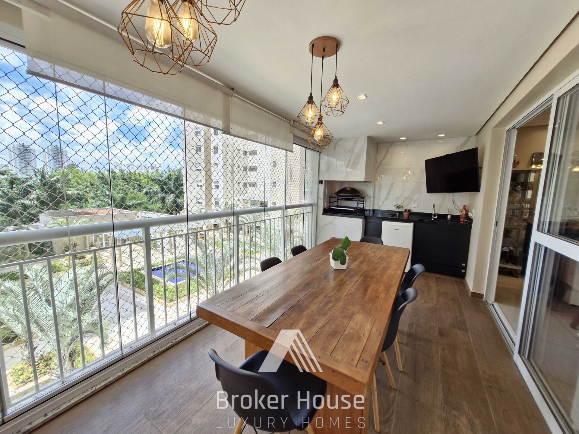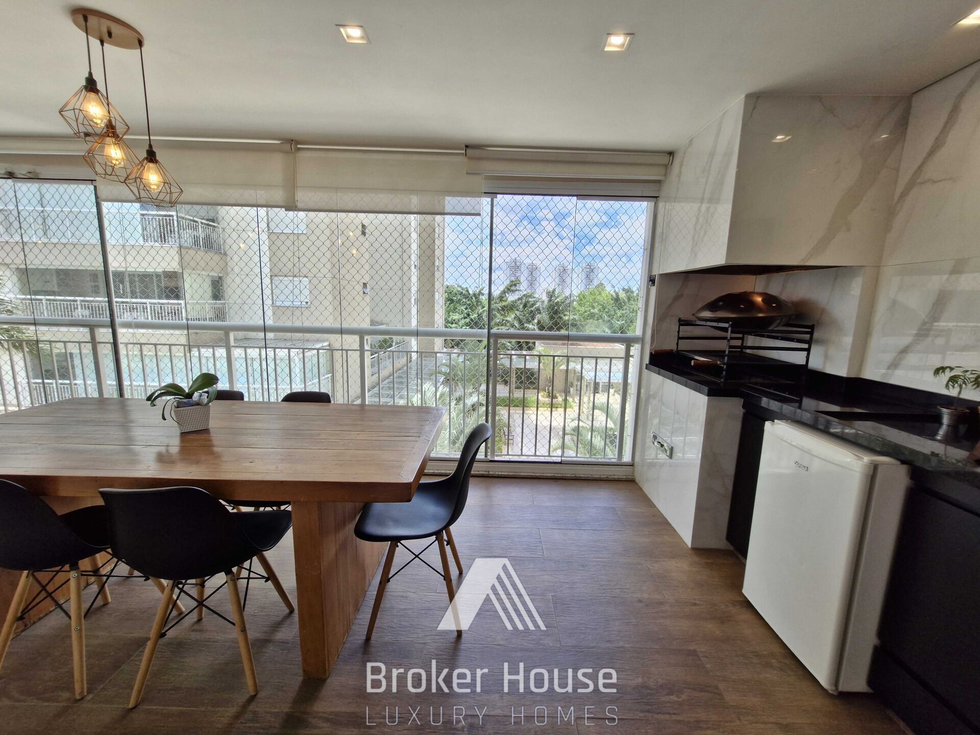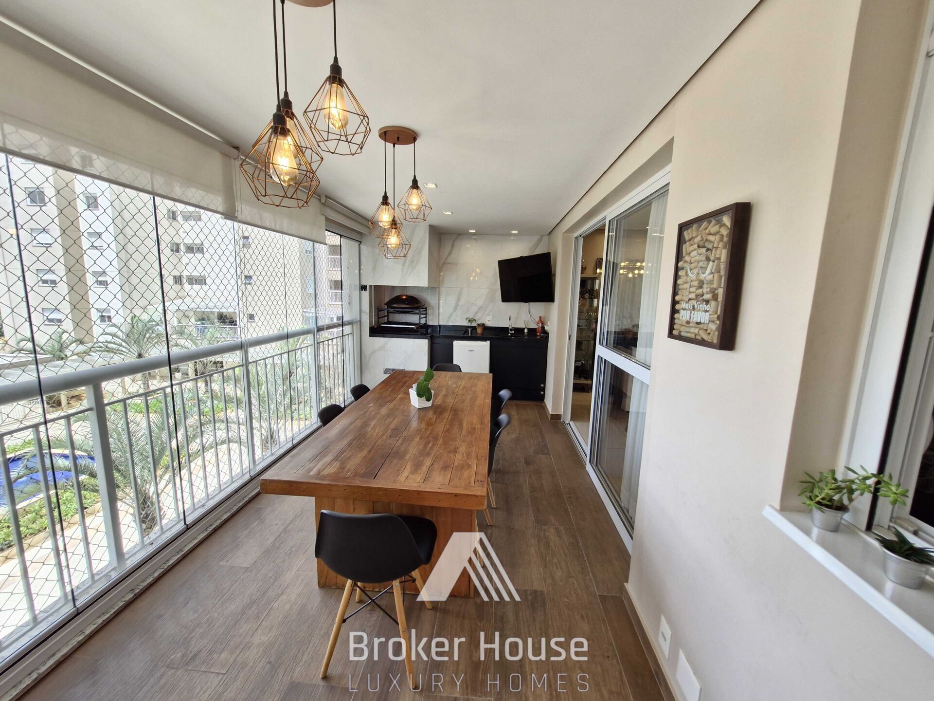 Sala de estar ampliada ( pode ser revertido o terceiro dormitório) integrada com sala sala de jantar. Ampla varanda gourmet com churrasqueira à carvão. Área íntima temos 2 dormitórios, destaque para suíte principal que conta com closet e escritório. Cozinha repleta de armários, área de serviço espaçosa com banheiro para funcionário. 2 vagas de garagem e depósito privativo.