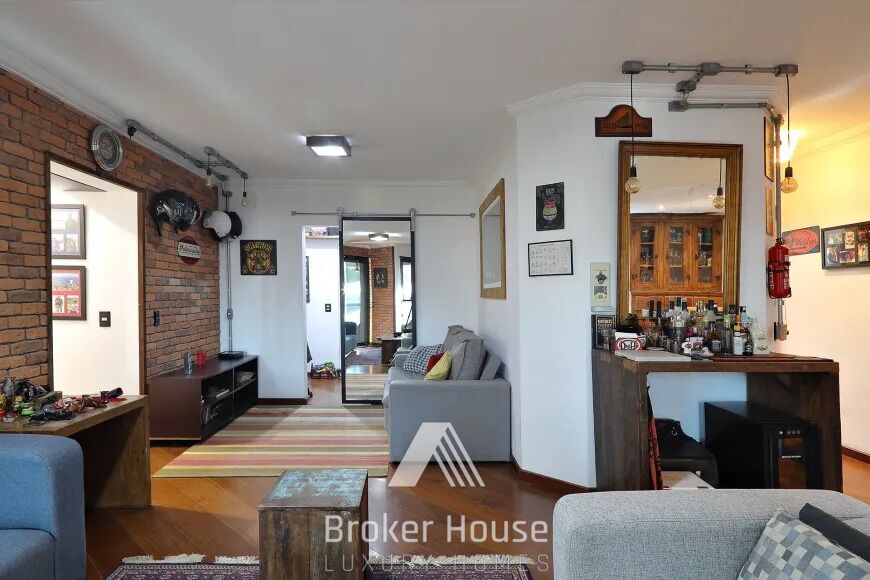 Living amplo, com integração entre as salas de estar, jantar e TV, além de espaço para bar. Piso de tábua corrida de ipê, em perfeito estado. Varanda com vista aberta e ampla. Cozinha recém reformada, com cooktop à gás, forno elétrico, iluminação natural, e bancadas em quartzo branco. Lavabo. 3 dormitórios, sendo uma suite espaçosa, com closet grande, boa iluminação e ventilação. Banheiro da suíte amplo, com banheira e acabamentos em preto e branco, seguindo um estilo moderno com revestimento subway tile. Bancada com pia dupla e piso em granito preto.