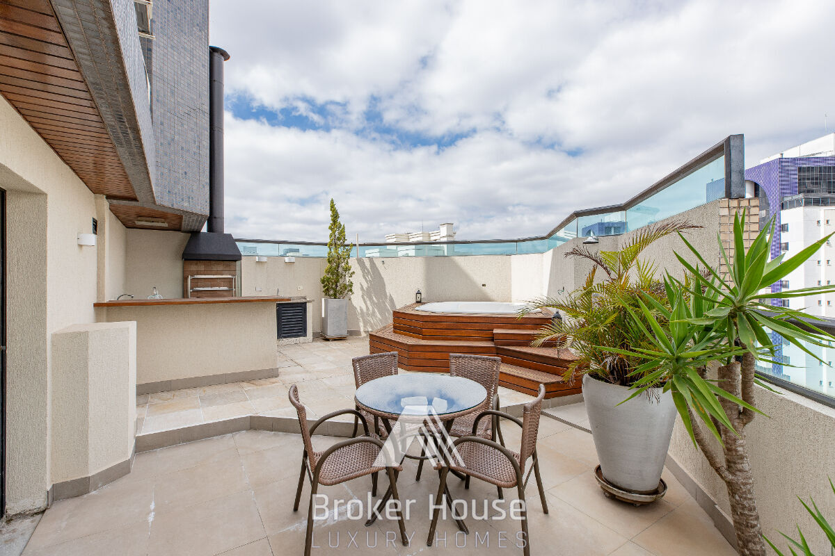Espaçoso terraço com churrasqueira, jacuzzi e uma vista incrível.