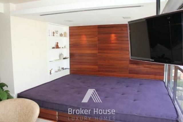 O Terraço foi anexado ao living, ficando com cerca de 80m2, divididos uma área Zen, além de um home theater wifi com tela de projeção. O piso é um limestone espanhol e a vista da para o parque Burle Marx e Panamby. A cozinha tem porcelanato preto e armários na mesma cor (são todos Kitchens, bem como a lavanderia, o Gourmet e o Roupeiro) . A lavanderia tem cuba de inox embutida, armários em aços e bancada em granito preto. Há ainda a despensa e banheiro de funcionários