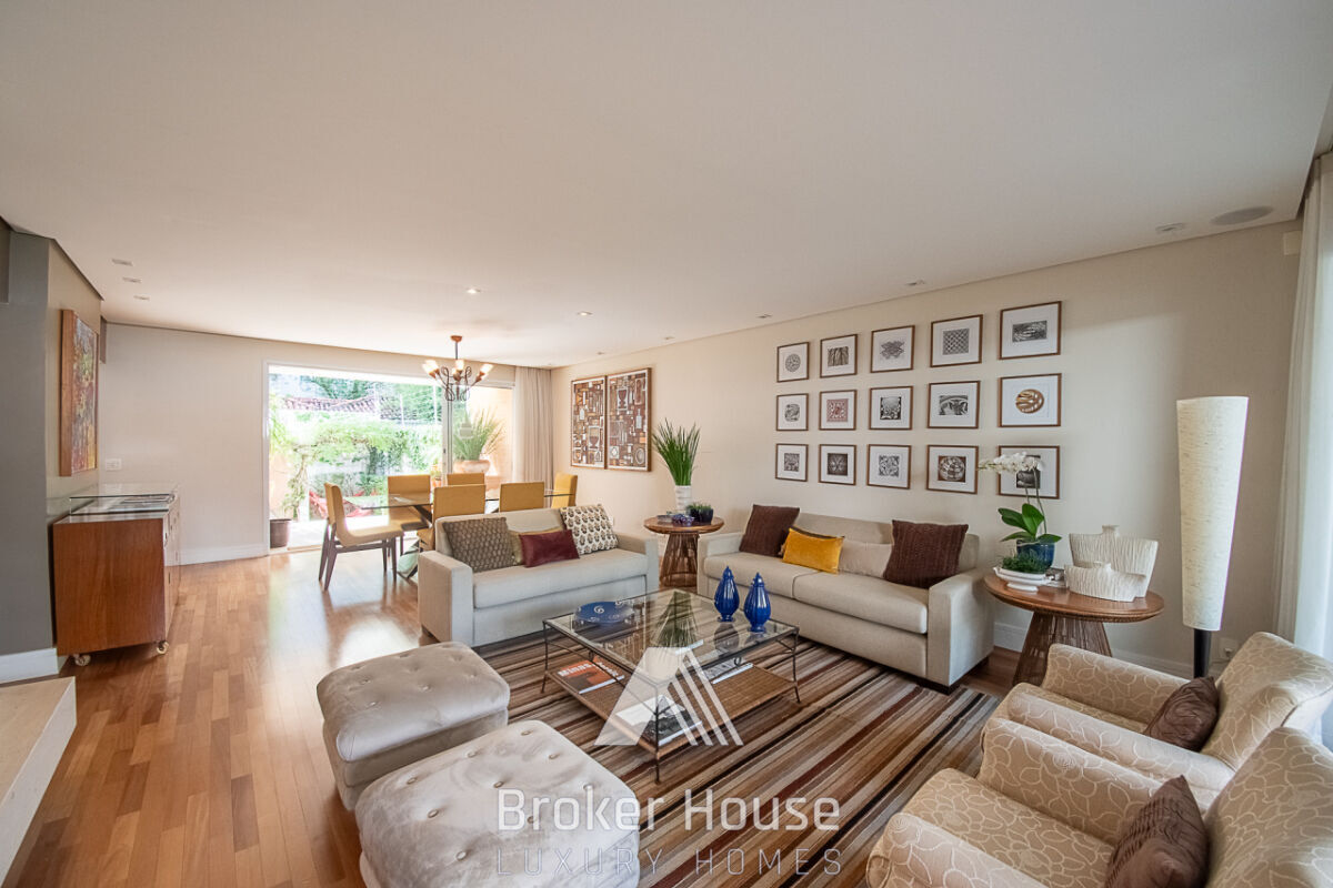 Casa impecável, living para vários ambientes integrados: estar com lareira, sala de jantar, home theater e terraços. Som ambiente in-ceiling nos ambientes sociais todos e no espaço gourmet. Na enorme área externa (com mais de 100m²) da casa um aconchegante projeto paisagístico abraça as pessoas. Espaço muito gostoso! Há ducha, área gourmet lindíssima com churrasqueira e forno de pizza (acomodando mais de 20 pessoas), redário e um gramadão que faz toda a diferença. O som ambiente e o projeto de iluminação deixam o espaço ainda mais especial. Lavabo. Cozinha planejada e com ótimo tamanho.