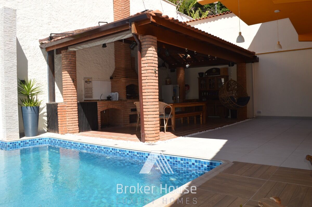 Casa em rua com cancela e segurança 24h. Arquitetura diferenciada, Hall de entrada com jardim de inverno, lavabo, sala de estar com lareira e pé direito duplo, sala de jantar, cozinha com copa e repleta de armários.