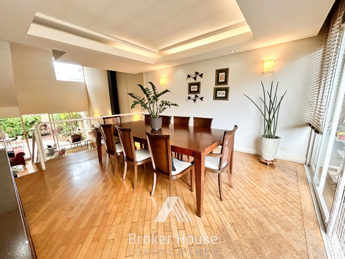 Ampla sala de estar com pé-direito duplo, lareira, pisos em madeira e grandes portas de vidro que se abrem para um ensolarado pátio externo, cercado pela natureza e com uma encantadora área gourmet. Sala de jantar com varanda e a opção de integração com a cozinha, proporcionando um espaço ainda mais amplo e funcional. Mezanino que virou sala de tv. 3 dormitórios, sendo 2 suítes.