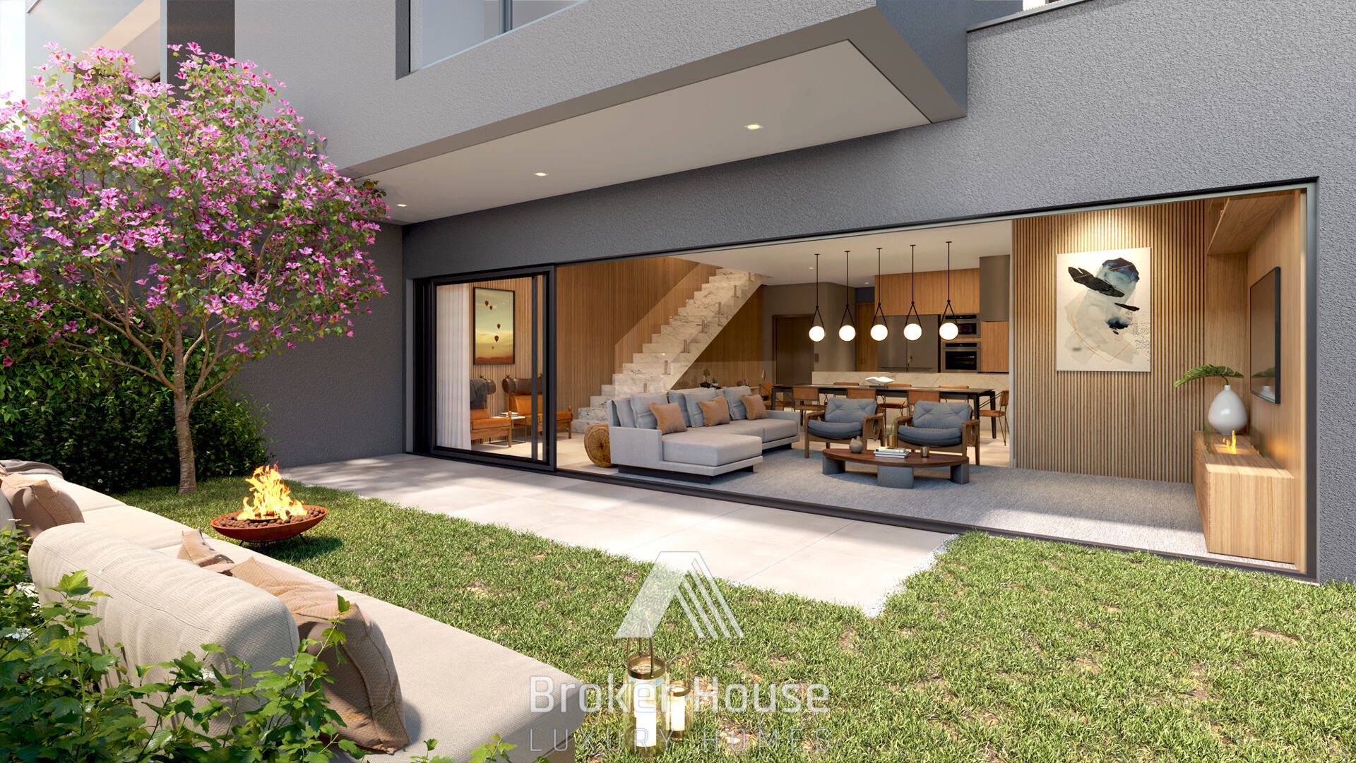 São casas de 488 a 618 m² de área útil, configurado em 3 ou 4 suítes , 4 vagas de garagem + depósito privativo, living para 2 ambientes, jardim integrado ao living, cozinha, área de serviço, dependência de serviço no subsolo. Lindo rooftop gourmet com churrasqueira e piscina com borda infinita.