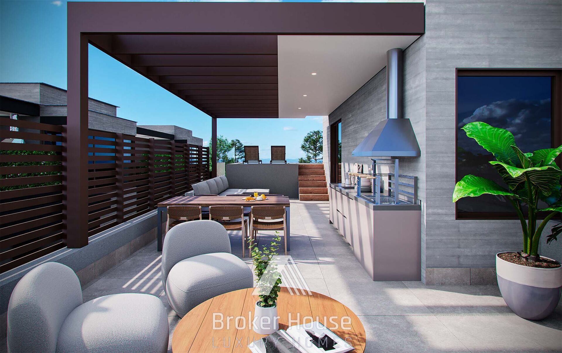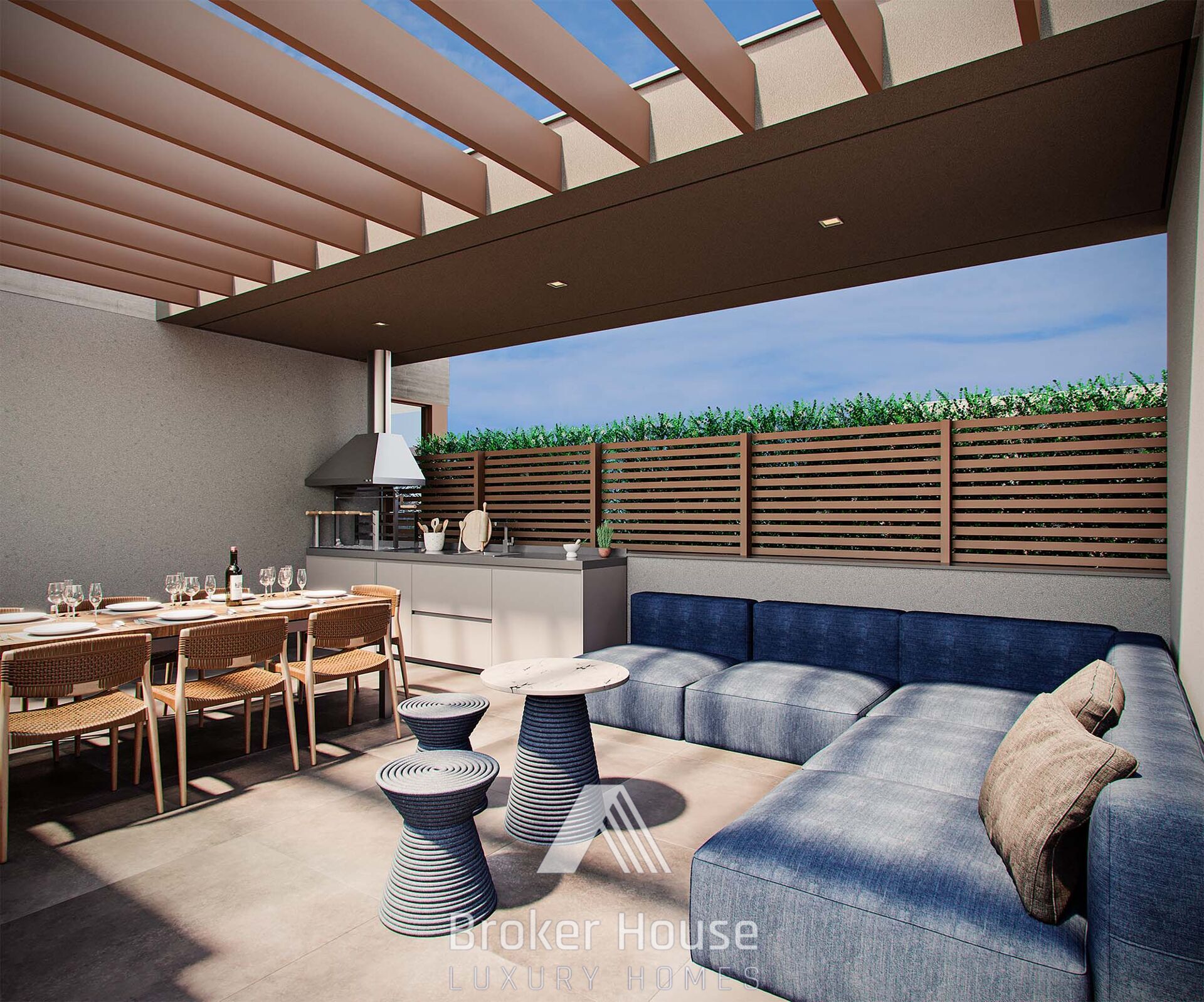 São casas de 558 a 679 m² de área útil, configurado em 3 ou 4 suítes , 4 vagas de garagem + depósito privativo, living para 2 ambientes, jardim integrado ao living, cozinha, área de serviço, dependência de serviço no subsolo. Lindo rooftop gourmet com churrasqueira e piscina com borda infinita.