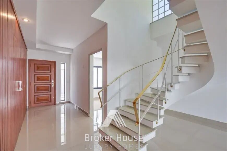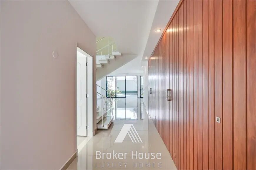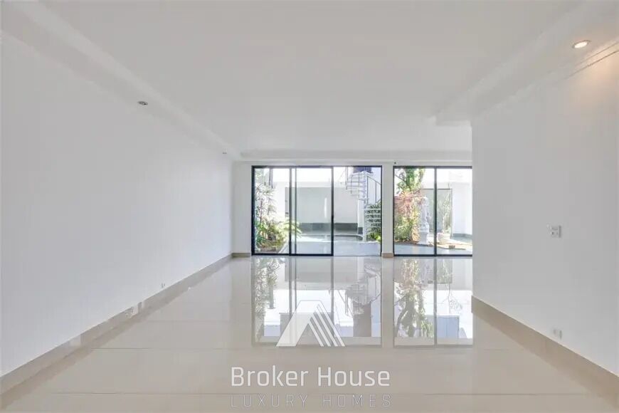Sala para 3 ambientes, piso de porcelanato, portas deslizantes de vidro temperado, home office, lavabo, copa e cozinha com instalação para água quente, área de serviço coberta. Pé direito duplo na área da escadaria.