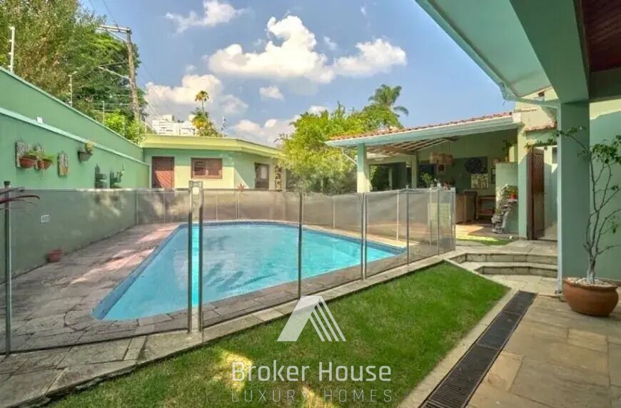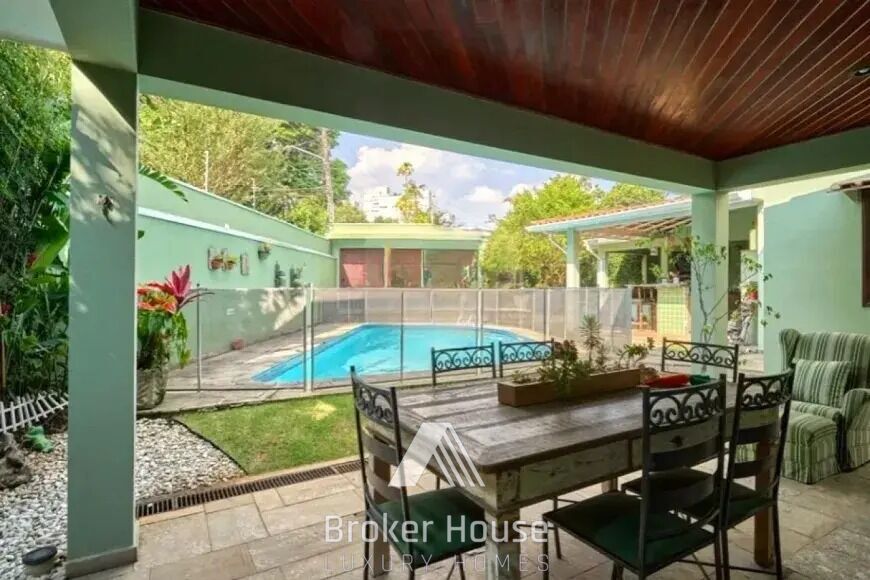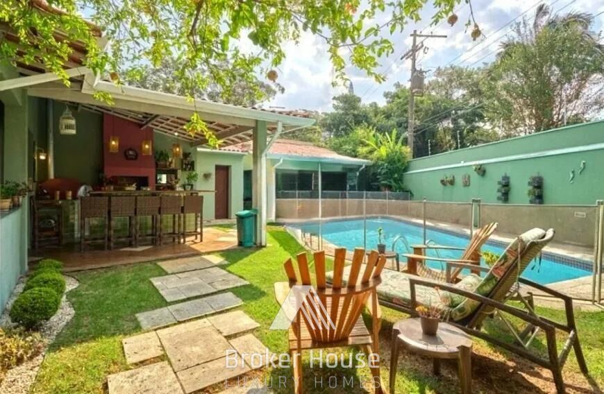 São 3 suítes, escritório, sala de jantar e uma ampla sala de estar com lareira e muita luz natural. Cozinha totalmente planejada com ótimos armários embutidos. Ar-condicionado nas suítes, escritório e salas. Na área externa, uma linda piscina, espaço gourmet e uma edícula com sala, cozinha, quarto e banheiro.