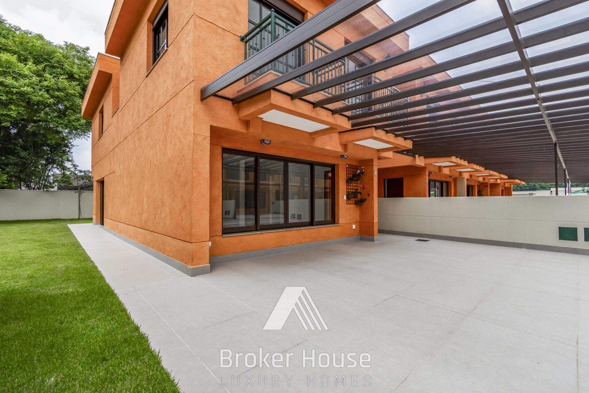 Diferenciais: Pontos individuais para instalação de tomada para recarga de veículos elétricos; Acesso com portaria blindada; Portão duplo bloqueio para acesso de automóveis; Portão duplo bloqueio para acesso de pedestres; Infraestrutura para aquecimento a gás para torneiras da cozinha, lavatórios e chuveiros dos banhos das suítes; Terraço externo descoberto, no pavimento superior, com infraestrutura para instalação de banheira de imersão ou ofurô; Infraestrutura (tubulação) para instalação de sistema de aquecimento solar; Reservatório individual de água com a capacidade de 2.000 litros; Persianas Automatizadas.