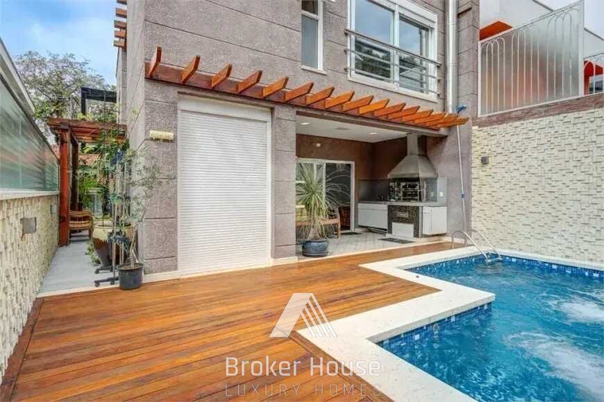 Na parte externa temos uma piscina aquecida com hidro, cascata e iluminação em led, área gourmet com churrasqueira, ambientes ideais para momentos de descontração em família ou confraternização com amigos.