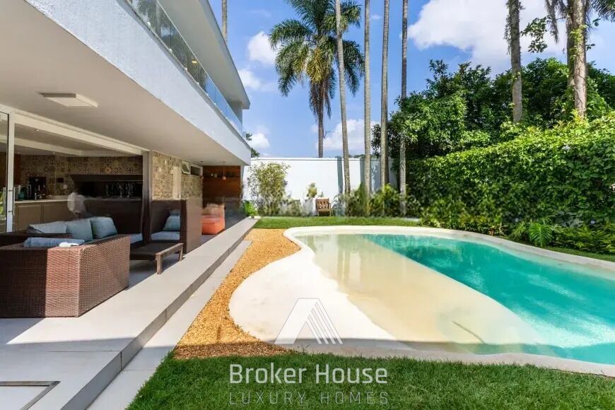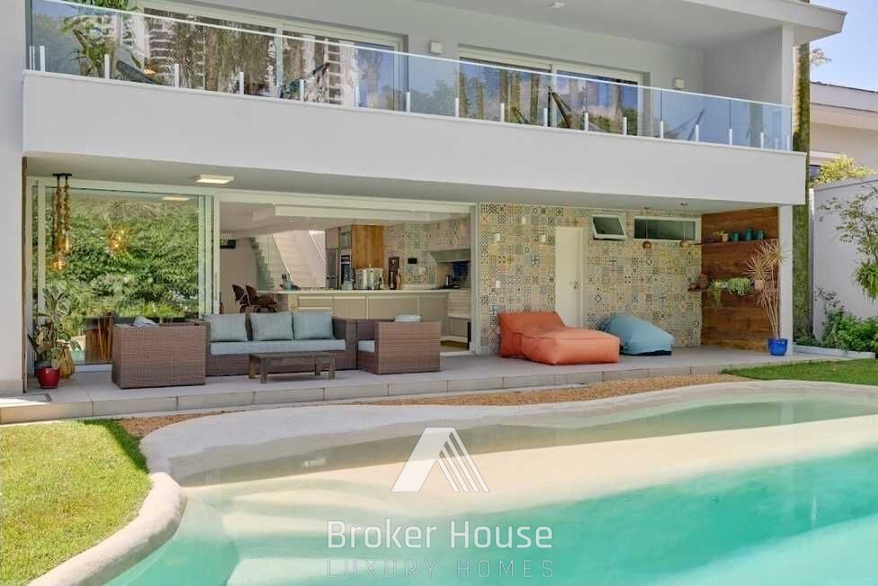 A casa possui um amplo living para três ambientes com ótima iluminação natural, sala de estar com lareira, varanda espaçosa com vista para a natureza, cozinha americana proporciona integração ao living. 5 suítes espaçosas, a master com closet, banheiro espaçoso com 2 chuveiros, banheira, aquecedores de toalhas e um jardim privativo com escritório e teto retrátil.